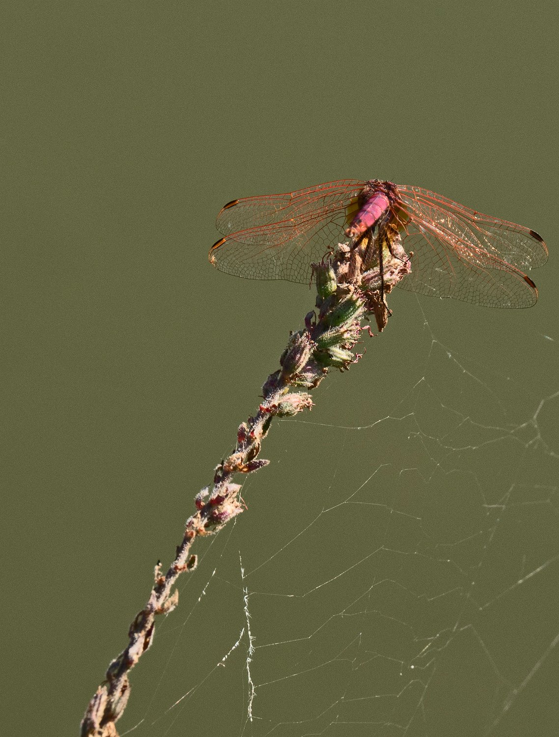 Libellule sympétrum rose vue de dos