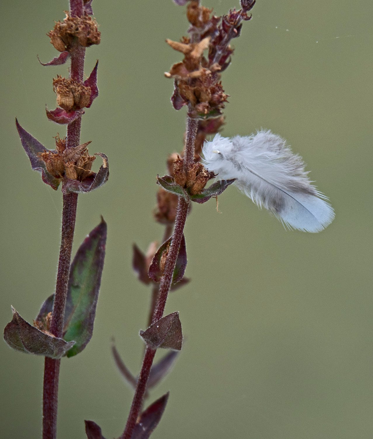 Plume accrochée à une plante
