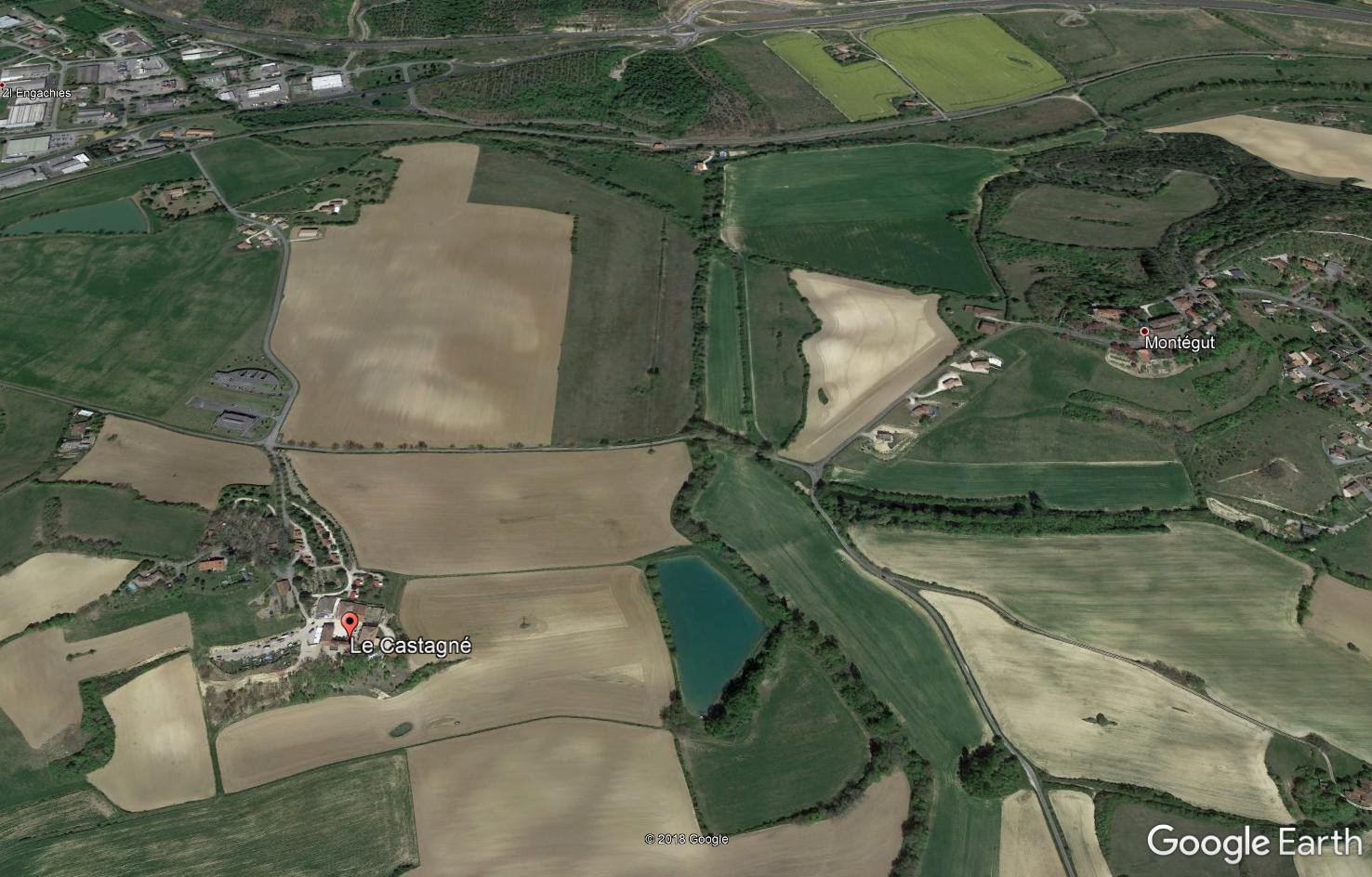 Vue Google Earth de l'environnement de l'étang du Castagné